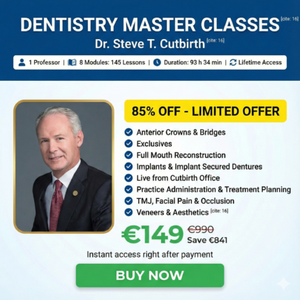 Join Dr. Steven T. Cutbirth for a massive 93-hour deep dive into complex clinical dentistry. From a 40-hour module on Veneers to Full Mouth Reconstruction and Practice Management, this is the definitive collection for the modern practitioner.