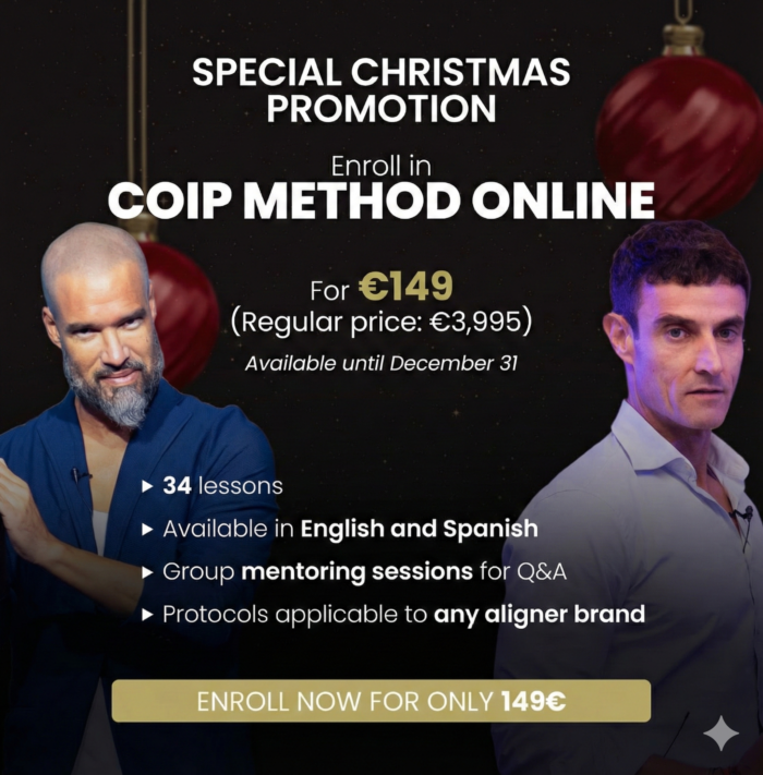 Master the COIP Method (Clear Orthodontic Invisible Plastic) with world-renowned experts Drs. Diego Peydro and Iván Malagón. This massive 3-module course provides the specific protocols to successfully solve any case—from severe open bites to complex Class III malocclusions—using Spark Aligners.