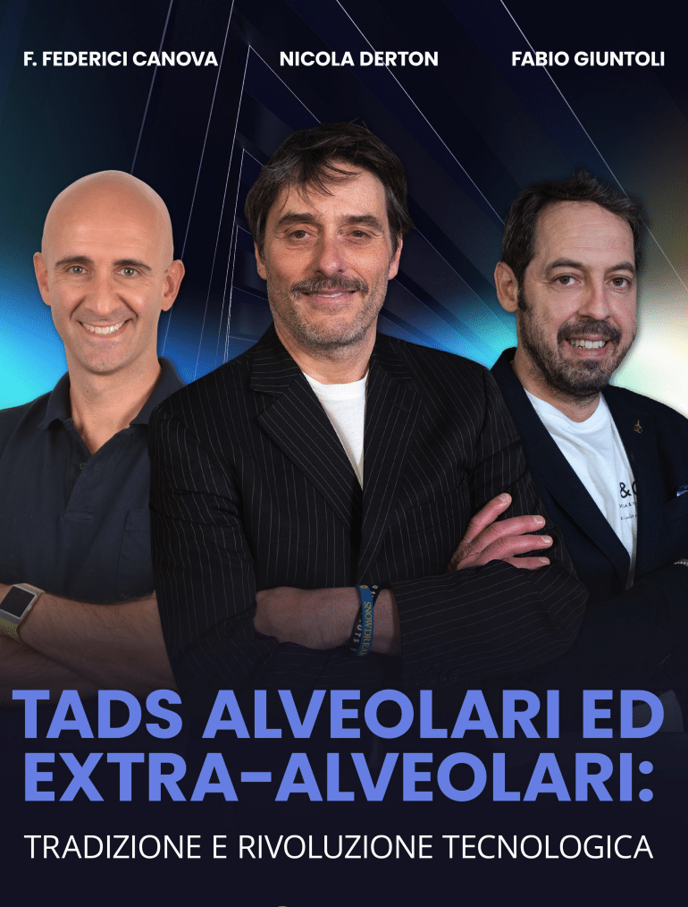 Dott.ri Nicola Derton, Fabio Giuntoli e Fabio Federici Canova ti danno il benvenuto in TADs Alveolari ed Extra-Alveolari, il corso teorico–pratico dedicato ai protocolli di utilizzo delle miniviti a inserimento alveolare ed extra-alveolare.